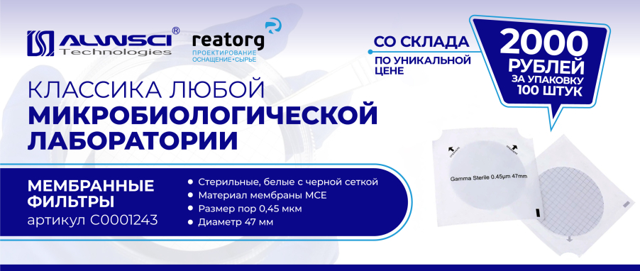 Компания РЕАТОРГ объявляет о специальной акции на мембранные фильтры C0001243 ALWSCI, классика любой микробиологической лаборатории.