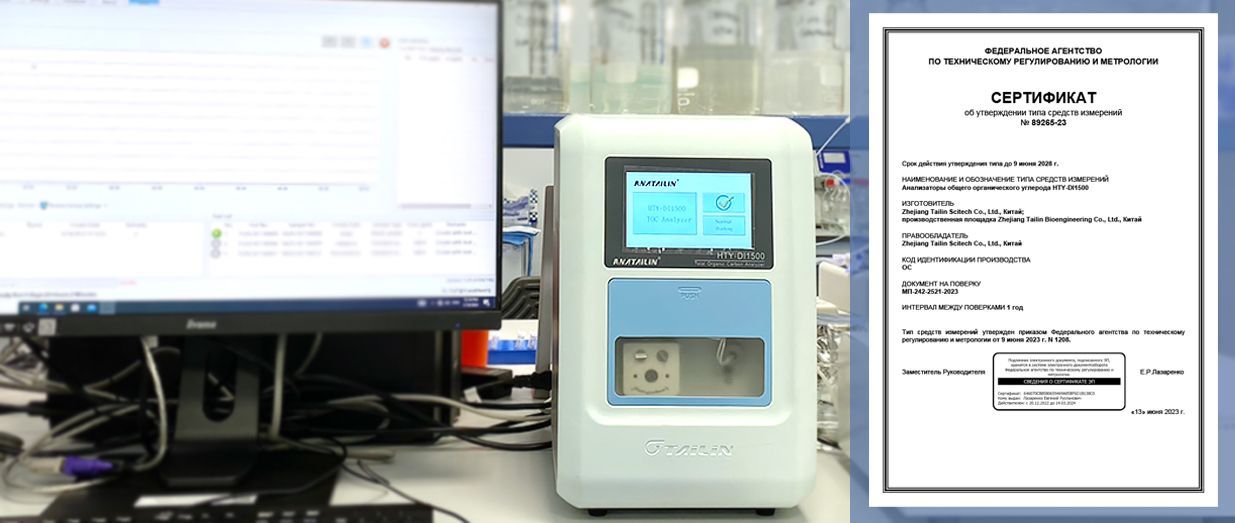 В июне 2023г. Федеральное агентство по техническому регулированию и метрологии (Росстандарт) утвердило тип средства измерения Анализатора общего органического углерода HTY-DI1500 Tailin.