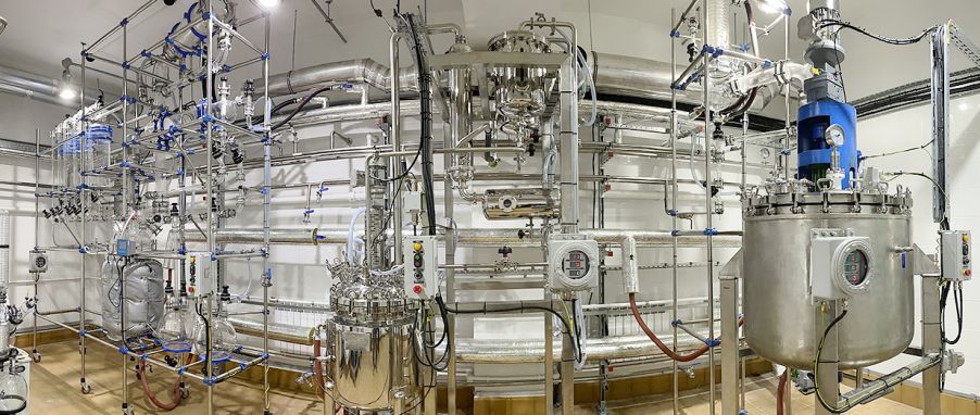 • a heat transfer fluid line for a glass lined reactor for 250 l and a stainless steel reactor for 100 l;