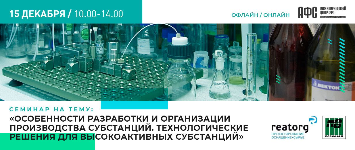 On December 15, REC API together with Reatorg and Polypharm companies will hold a seminar “Features of the development and organization of production of substances. Technological solutions for highly active substances "in a hybrid format.