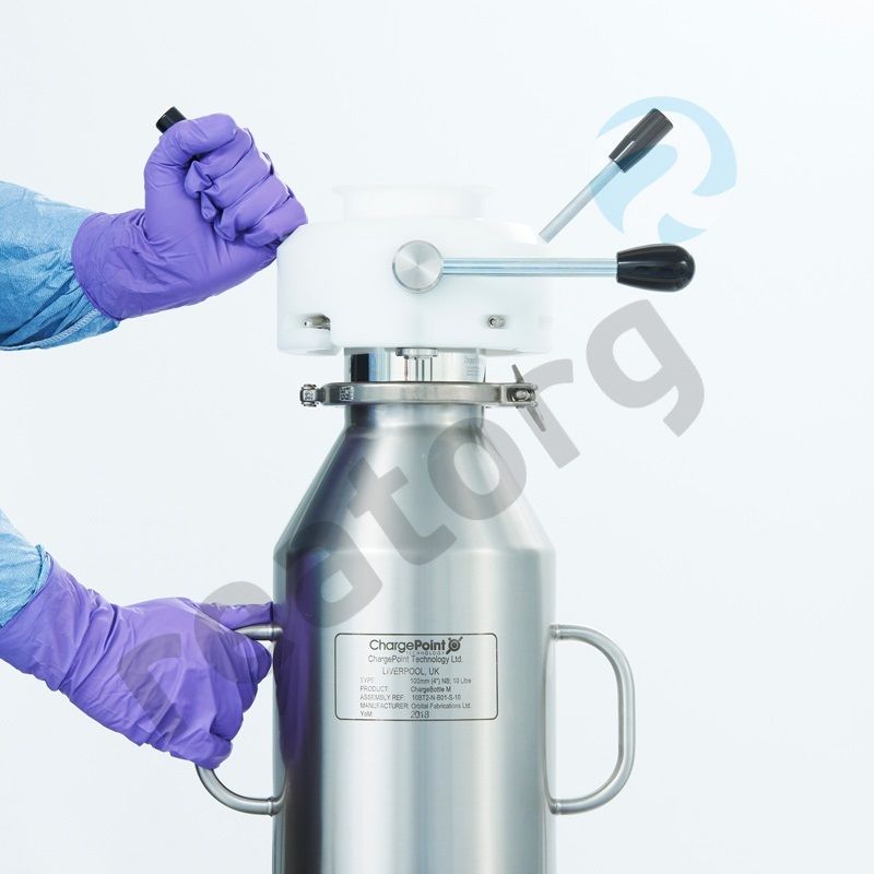 Надежные металлические контейнеры для перемещения порошков • Материал: 316L или Alloy 22 Размер соединения: DN150 (6'') Объем, л: 20 • Работа под давлением / вакуумом