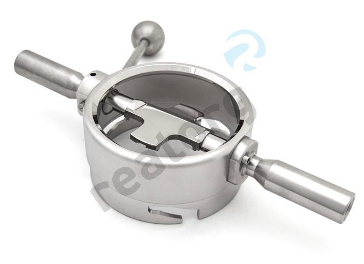 Открывающее устройство для стерилизации пассивного блока клапана в автоклаве. Возможность эффективной стерилизации уплотнений, мест контакта с продуктом пассивного блока клапана и подсоединенного контейнера / IBC. Размер: DN150 (6'')