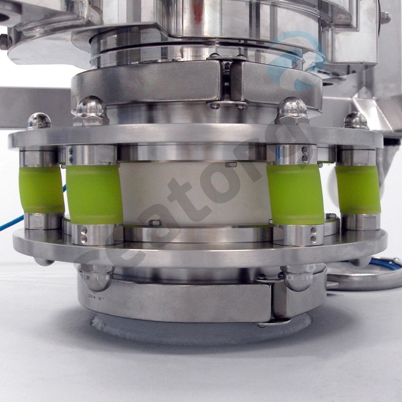 Передаваемый продукт контактирует с втулкой из EPDM. Поглощение ударных нагрузок идет за счет пружин и полимерных вставок, установленных по окружности.