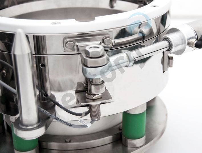 Съемный вибрационный зажим (с пневматическим приводом) устанавливается на контейнеры для облегчения разгрузки порошкообразного продукта, имеющего плохие характеристики сыпучести.