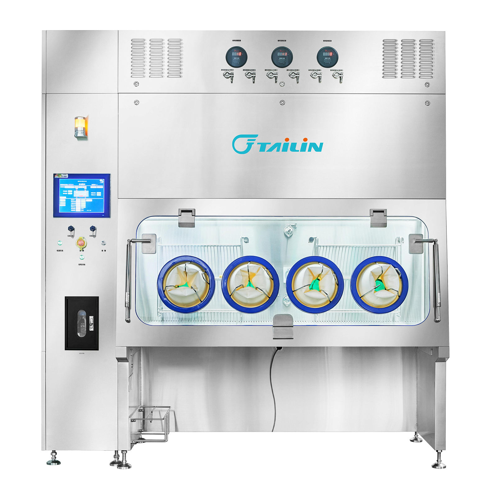Изолятор HTY-1800AG4 компании Tailin Bioengineering с ламинарным потоком воздуха предназначен для асептического отбора проб, взвешивания и упаковки сильнодействующих АФС и других токсичных агентов. Также данный изолятор может применяться для проведения тестов на стерильность.