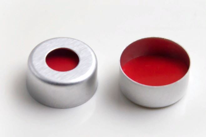 Расходные материалы для лабораторного хроматографического анализа: крышки обжимные с септой, материал - алюминий, септа - политетрафторэтилен, 20 мм, цвет серебристый, 1000 шт/уп