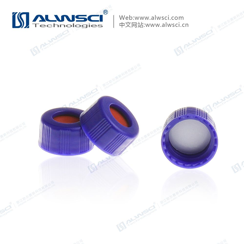Крышки для виал, 9-425, пластиковые, винтовые, с отверстием, септа белый PTFE/красный силикон, толщина 1 mm, UltraClean, 100/pk, C0001028 ALWSCI