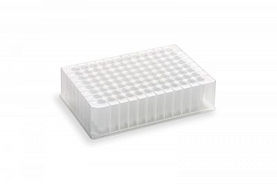 Расходные материалы для лабораторного хроматографического анализа: 96-луночный полипропиленовый микропланшет для размещения образцов в процессе пробоподготовки для хроматографии, объем лунок 0,8 мл, 25 штук в упаковке.