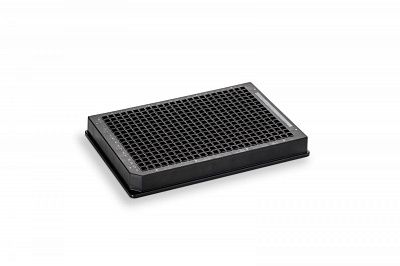 384-луночный микропланшет для хранения и анализа, черный, из полипропилена, квадратная лунка объемом 58 мкл, общий объем 22,272 мл, сферическое дно, высота 14,5 мм, глубина лунки 6,47 мм, 60 шт/уп.