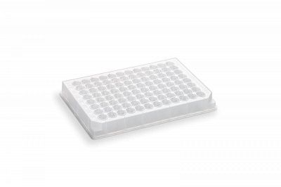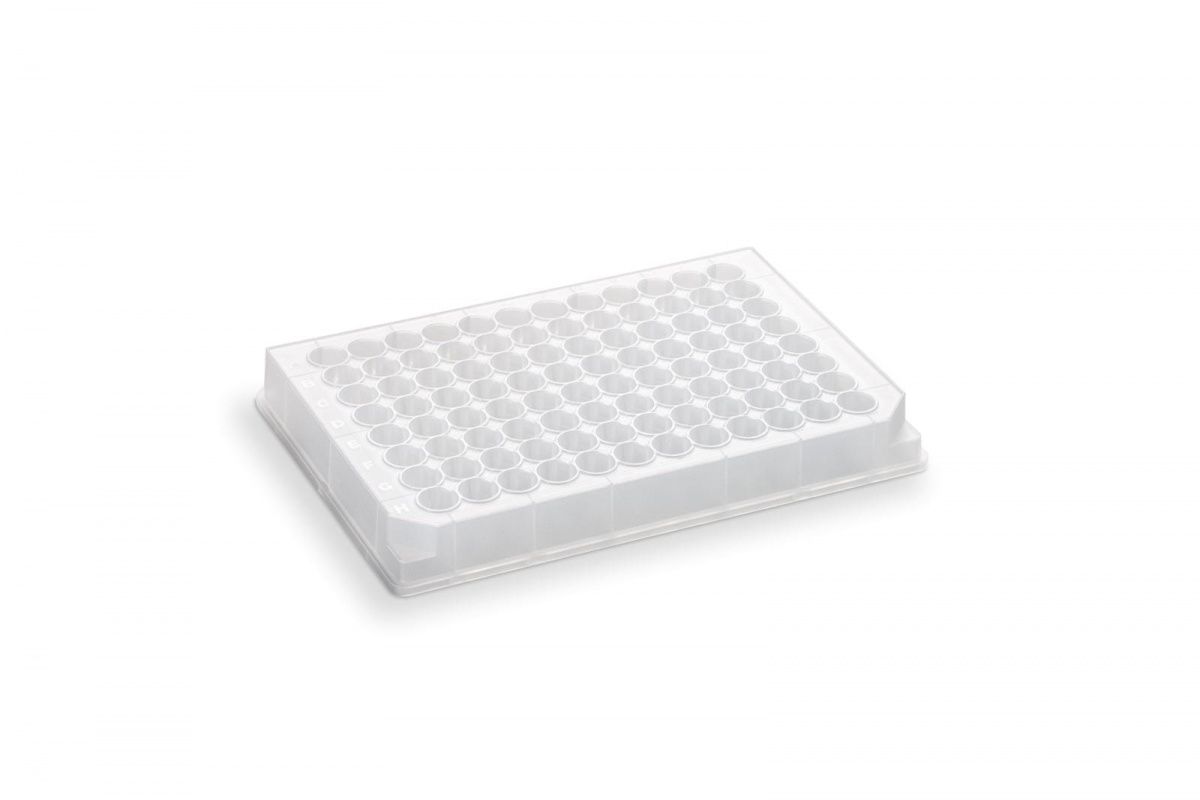 96-луночный микропланшет для хранения и анализа, из полипропилена, круглая лунка объемом 0,5 мл, общий объем 48 мл, сферическое дно, высота 14,3 мм, глубина лунки 11,68 мм, 50 шт/уп.