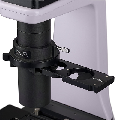 В слот конденсора может быть установлен слайдер рельефного контраста или слайдер модуляционного контраста Хоффмана.