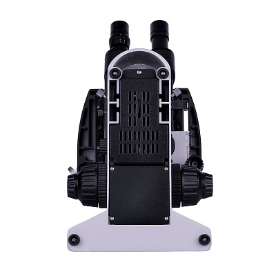 Для освещения рабочей области используется светодиод мощностью 3 Вт с долгим сроком работы – около 50 000 часов. Изменение яркости освещения не изменяет его цветовую температуру. Благодаря наличию полевой диафрагмы можно использовать метод Кёлера при настройке освещения. А в специальный слот конденсора можно устанавливать слайдеры: темного поля или фазового контраста. Использование слайдеров ускоряет переключение между разными методами исследования и делает работу с микроскопом более удобной.