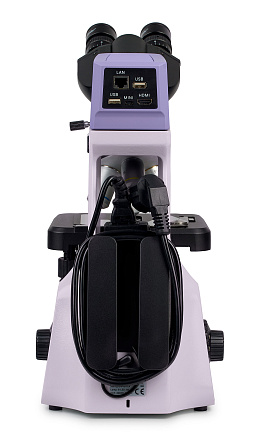 Цифровая камера, встроенная в визуальную насадку, производит фото- и видеоматериалы в разрешении 4К (3840x2160 пикс). 8-мегапиксельная матрица позволяет рассмотреть мельчайшие детали объекта. Наиболее эффективно сочетать камеру с объективами на 4 крата и 10 крат. Кроме своего прямого назначения камера поможет в точной фокусировке микроскопа. Встроенный интерфейс Wi-Fi предназначен для передачи материалов на компьютер.
