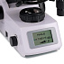 Выбранные параметры – увеличение рабочего объектива, режим работы, интенсивность освещения – отображаются на экране, встроенном в основание микроскопа. Параметры устанавливаются с помощью двух ручек.