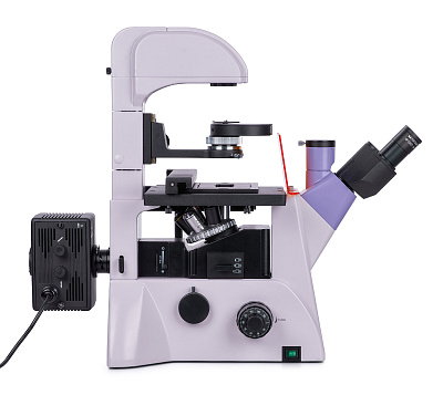Микроскоп предназначен для исследования объектов при освещении отраженным светом по методу люминесценции и при освещении проходящим светом по методам светлого поля и фазового контраста.<br>На микроскопе исследуют осадки жидкостей, клеточные колонии, живые клетки, культуры тканей и другие объекты в питательной среде в лабораторной посуде высотой до 55 мм с толщиной дна 1,2 мм. В микроскопе используются специальные объективы для работы с такой посудой. Штатив осветителя отклоняется для работы с чашками Петри или колбами высотой до 165 мм.<br>Микроскоп используется для иммунохимической диагностики и хромосомного анализа, выявления скрытых бактериальных и вирусных инфекций.