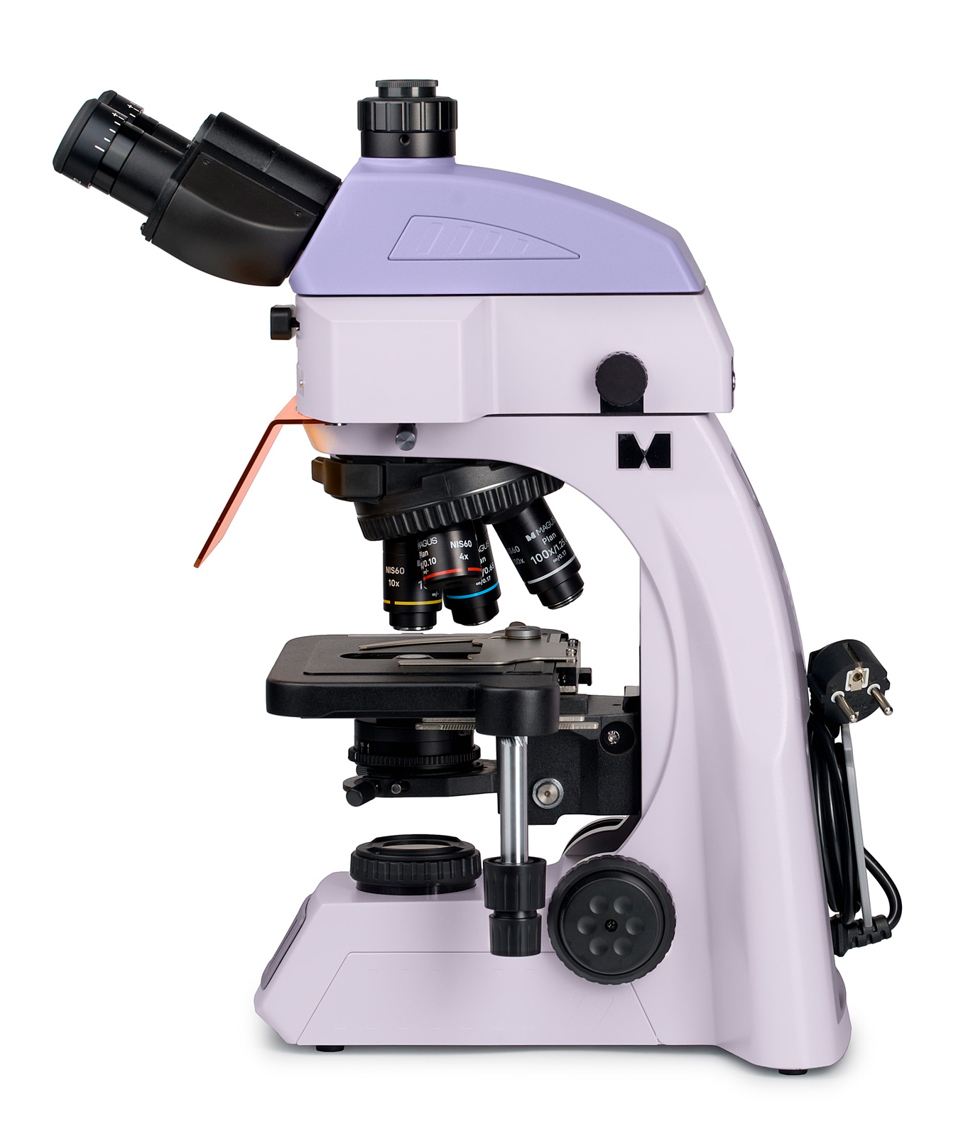 Помимо перечисленных особенностей конструкции, влияющих на комфорт пользователя, в дизайне микроскопа предусмотрели возможность спрятать от глаз пользователя провода: рабочее место становится более опрятным и безопасным. На корпусе прибора размещена надежная ручка для переноски. Микроскоп удобно хранить, использовать и перемещать.