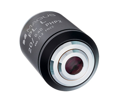 Объектив 20HP предназначен для исследования неразличимых в светлом поле биологических живых образцов. Из-за окрашивания они погибают, а метод фазового контраста позволяет изучить микроорганизмы, не воздействуя на них напрямую и не нанося им вреда. Для создания контраста применяется фазовый конденсор с кольцевой диафрагмой или фазовая вставка с кольцом под объектив 20х. Для проведения исследования понадобится посуда с толщиной дна 1,2 мм.