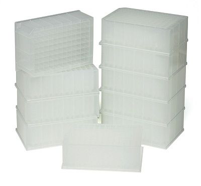 96-луночный планшет для сбора из полипропилена, квадратная лунка объемом 2 мл, размеры (ШxВxД) 85,5 мм x 127,6 мм x 44,4 мм, коническое дно, нестерильный, 50 шт/уп.