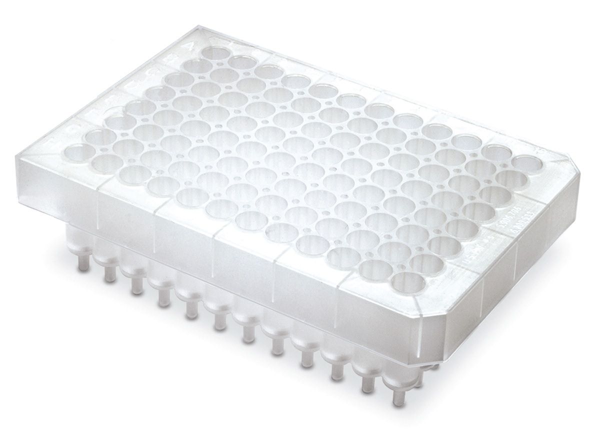 96-луночный планшет из полипропилена с полуюбкой, круглая лунка объемом 1 мл, сорбент Bond Elut Plexa PAX (комбинированный механизм: неполярный и сильный анионообменный) массой 10 мг, полиэтиленовая фритта, нестерильный, 1 шт/уп.