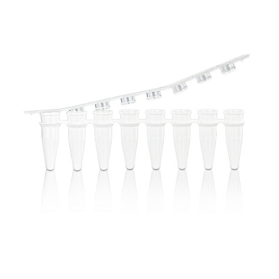Пробирки в стрипах, 0.2 мл, 8-полос, белая, с прозрач плоской крышкой, нестерил, 1250/уп, PK00192