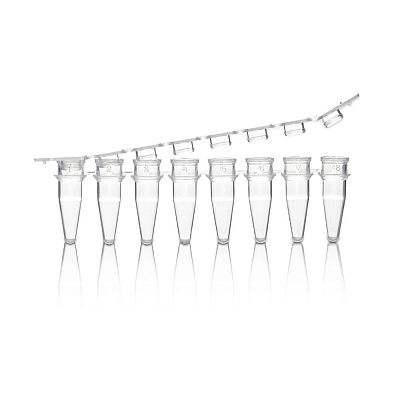 Пробирки в стрипах, 0.2 мл, 8-полос, прозрач, с прозрач плоск крышк, нестерил, 1250/уп, PK00191