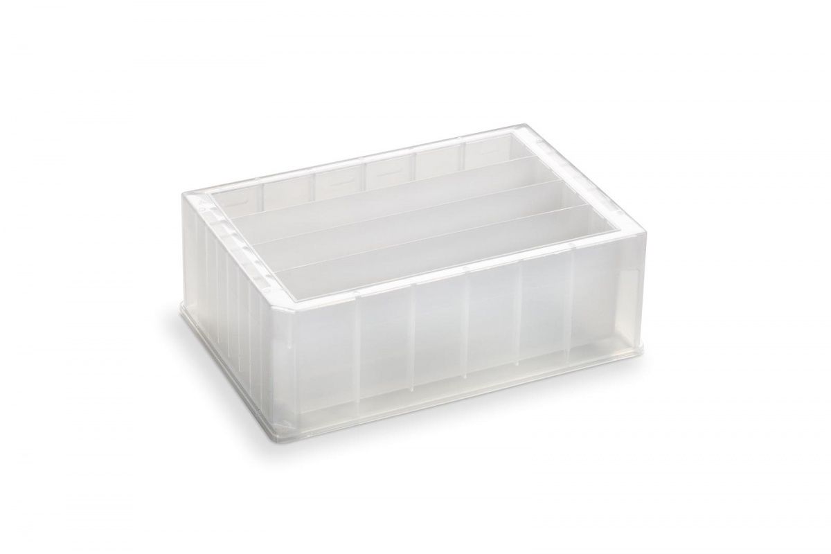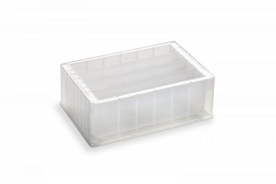 Резервуар из полипропилена, 4 ряда, объем ряда 73 мл, максимальный объем 292 мл, пирамидальная форма дна, высота 44 мм, облученный, 25 шт/уп. Планшеты стерилизованы гамма-излучением.