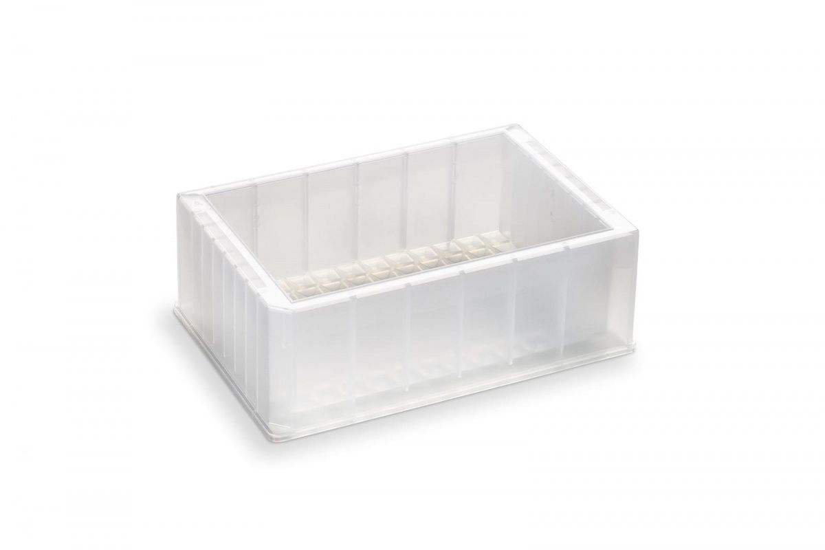Резервуар с одной полостью из полипропилена, объем 300 мл, форма дна из 96 пирамид, высота 44 мм, облученный, в индивидуальной упаковке, 25 шт/уп. Планшеты стерилизованы гамма-излучением.