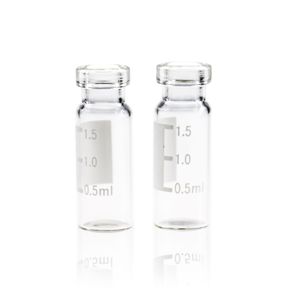 Лабораторные расходные материалы: виалы 2 мл, материал: прозрачное стекло, плоское основание, 11 мм, обжимной флакон, широкое отверстие, с этикеткой, 100 шт/уп