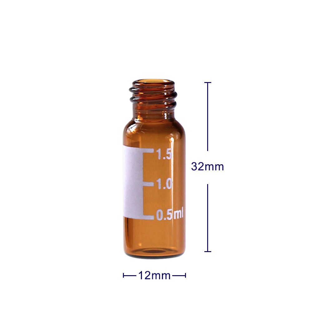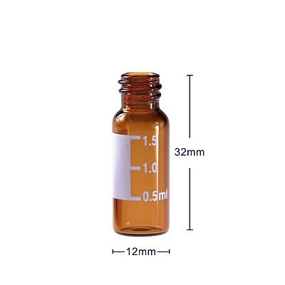 Лабораторные расходные материалы: Виалы винтовые 2 мл из янтарного стекла, плоское дно, 12x32 мм, 8-425, с этикеткой, 100 шт/уп