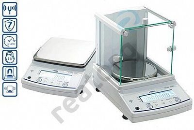 Бюджетные лабораторные весы ViBRA серии AB на базе датчика Tuning-Fork Мах: 1200г Размер платформы: 190х190мм Калибровка: Внутренняя