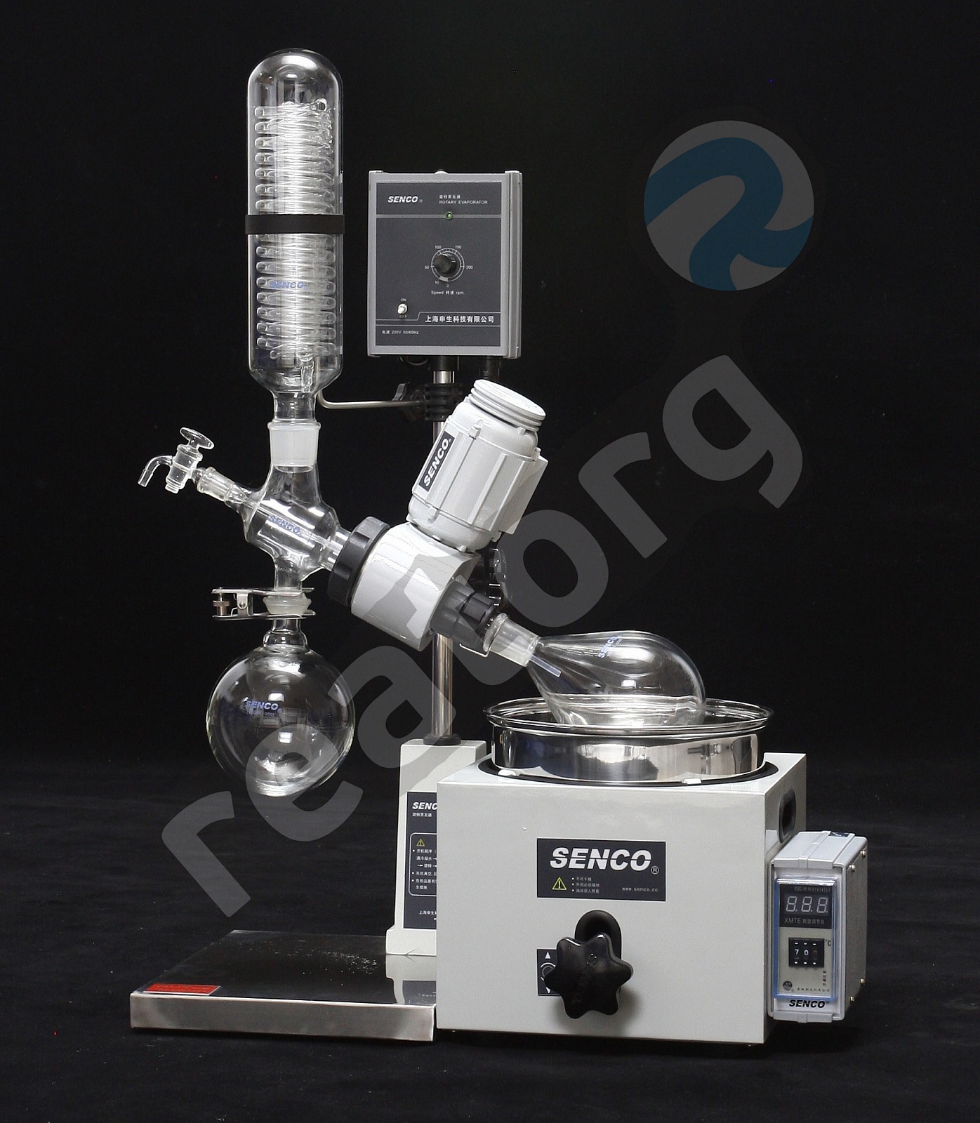Ротационный испаритель на 1л или 2л с масляной баней мощностью 12кВт, регулируемый диапазон температур от 0°С до 180°С, приемная колба 1л. Оборудован вертикальным холодильником.