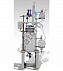 Стеклянный реактор объемом 5 л из боросиликатного стекла марки 3.3 с приварной рубашкой без теплоизоляции, со съемной купольной крышкой, с донным вентилем 50 мм, с центральной верхнеприводной мешалкой, мерником 0,5 л, теплообменником, на штативе.