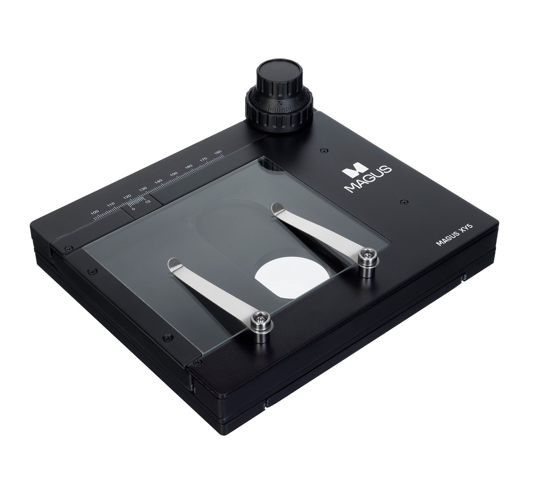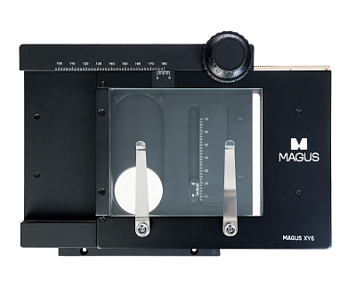 Многофункциональный столик MAGUS XY5 для работы с образцами предлагает необходимый функционал для фиксации, перемещения и измерения объекта на стереомикроскопе. Аксессуар оснащен лапками зажима для фиксации препарата и измерительной шкалой с нониусом для определения размеров. Прозрачная поверхность столика идеально подходит для работ как в отраженном, так и в проходящем свете.