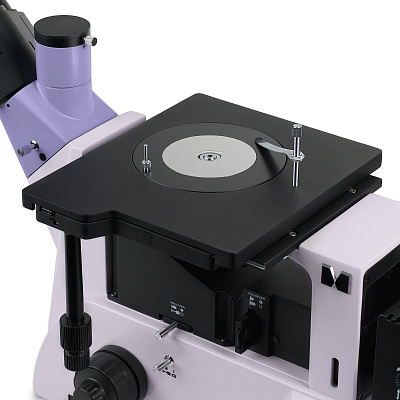 Инвертированная конструкция микроскопа не ограничивает геометрию объекта исследования, а только ограничивает его массу – до 2 кг. Одна грань образца подвергается специальной обработке и образец устанавливается на столик вниз этой поверхностью.
