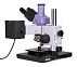 Микроскоп помещается на полках высотой 40 см и больше благодаря компактному штативу. Оригинальная конструкция штатива и механизма фокусировки не ограничивает высоту объектов исследования, а двухкоординатный столик удобен для работы с небольшими объектами. Оптический блок вместе с осветительной частью микроскопа устанавливается на штатив индивидуального дизайна и встраивается в производственную линию.