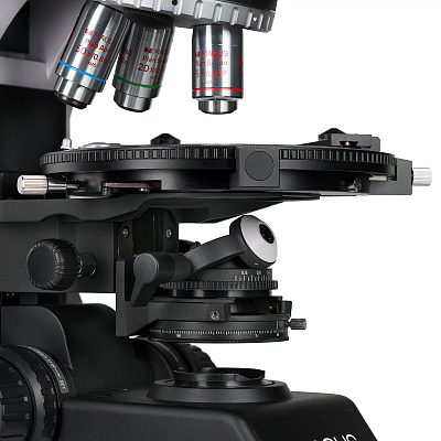 • Вращаемый круглый предметный столик с нониусом для точного измерения угла поворота, фиксируется в выбранном положении