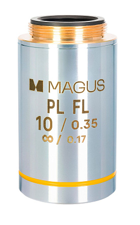 MAGUS 10PLFL – это объектив для наблюдений при люминесцентном свете. Его оптика отличается высокой пропускной способностью для разных волн; объектив не имеет собственного люминесцентного свечения и не допускает двойного лучепреломления – они могут исходить только от препарата. Апертура 0,35 дает объективу большой предел разрешения и разрешающую способность: изображение получается ярким, насыщенным и контрастным.