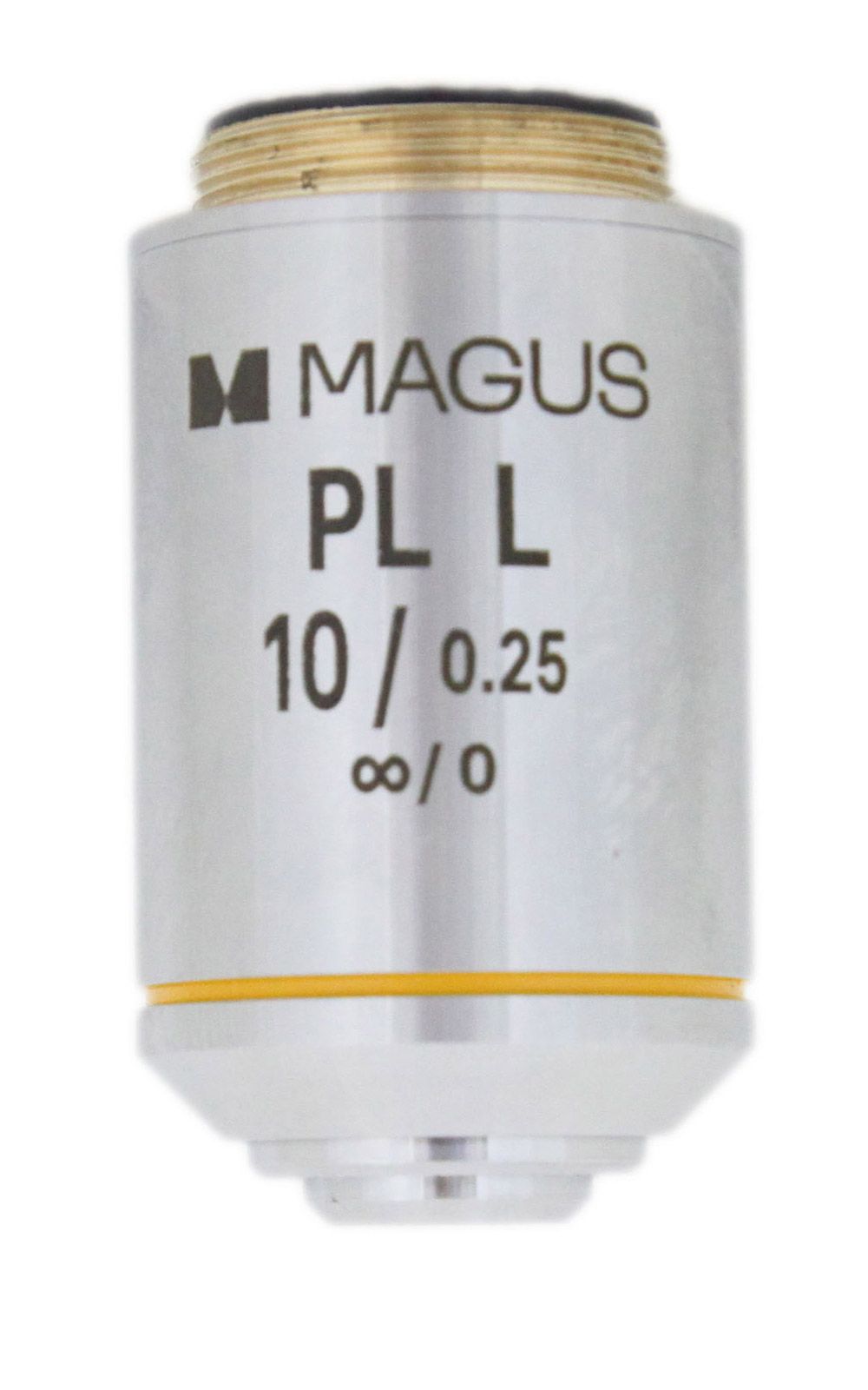 Объектив рассчитан на длину тубуса «бесконечность». Парфокальная высота 45 мм. При работе с окуляром 10х/22 мм диаметр поля зрения составит 2,2 мм. Рассчитан для работы с образцами без покровного стекла.