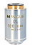 Объектив кратностью 100х обладает пределом разрешения 0,35 мкм. Подходит для тубуса с оптической длиной «бесконечность», парфокальная высота составляет 45 мм, работает с покровным стеклом толщиной 0,17 мм.