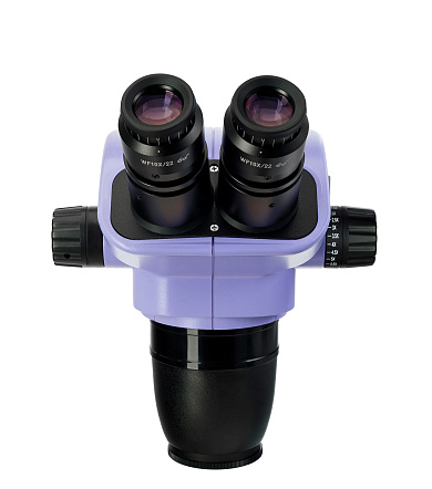 Объектив плавно изменяет увеличение в 8,4 раза без потери фокуса. Оптическая система формирует прямое (неперевернутое) объемное изображение. Дополнительные насадки на объектив изменяют диапазон увеличения, поле зрения и рабочее расстояние микроскопа.