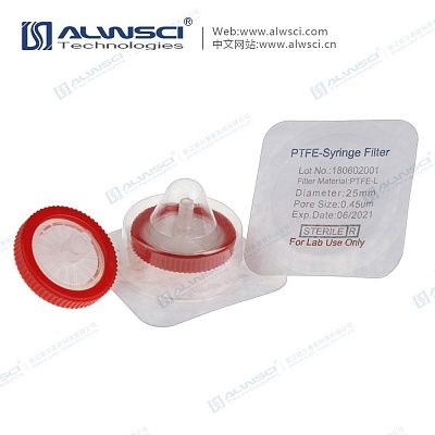 Sterile 25mm PTFE Hydrophilic Syringe Filter 0.45um with Outer Ring.50pcs/pk.