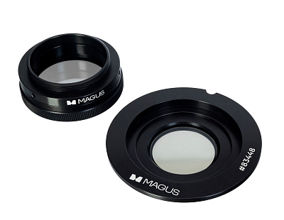 Конденсор темного поля для изучения прозрачных неокрашенных объектов, которые не видны в светлом поле. Числовая апертура конденсора 1,36–1,25. Его можно использовать с объективами, увеличение которых больше 20x, в том числе с иммерсионными. При использовании конденсора MAGUS DF2 A надо обязательно наносить масло и на сухие, и на иммерсионные объективы, иначе не удастся получить четкое изображение.