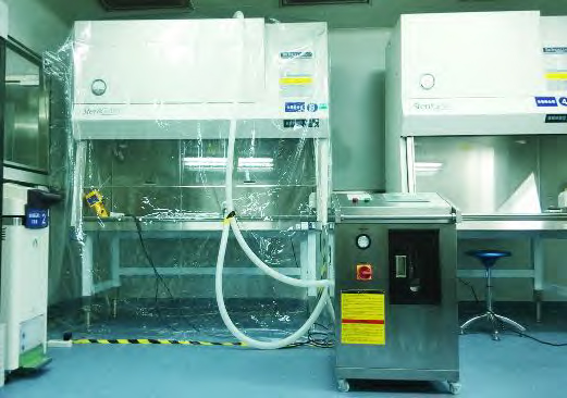 VHP генератор HTY-V100 специально разработан для проведения стерилизации в замкнутых пространствах – изоляторах, боксах микробиологической безопасности, передаточных камерах и т.п. Для этих целей генератор подключается к оборудованию с помощью шлангов. Для стерилизации боксов микробиологической безопасности используется специальной пластиковый купол, к которому подключается генератор HTY-V100. Преимуществом генераторов паров перекиси водорода является тот факт, что в газообразном состоянии перекись водорода имеет более высокую спороцидную активность в сравнении с жидкой перекисью при комнатной температуре.